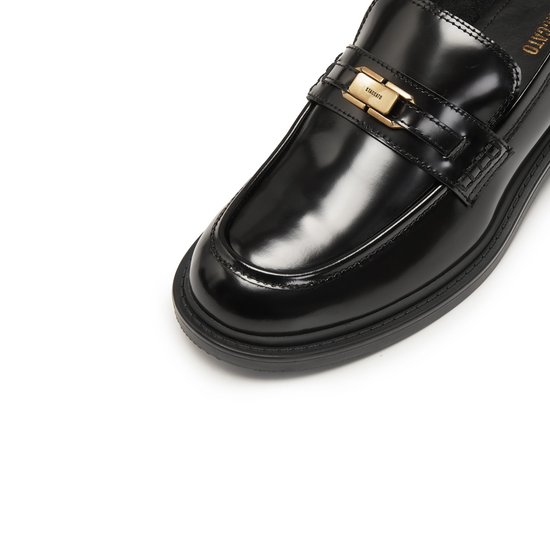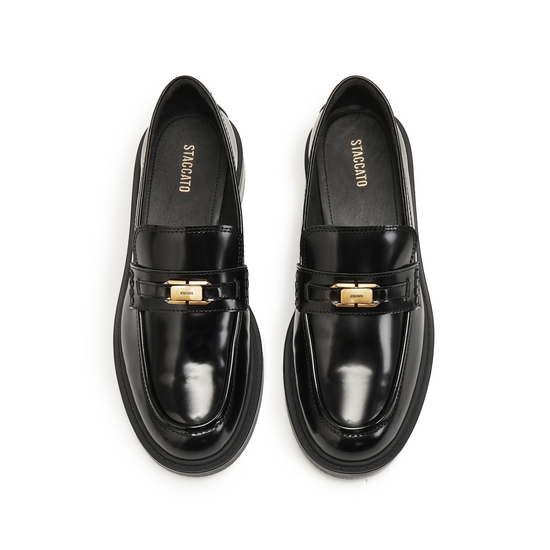 Loafers - Black Leather Slip-On Loafers 9UL21