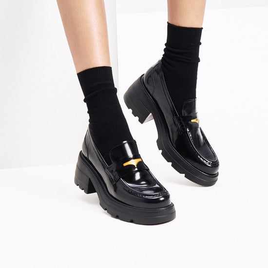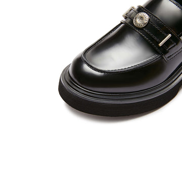 Loafers - Black Leather Slip-On Loafers EEZ22