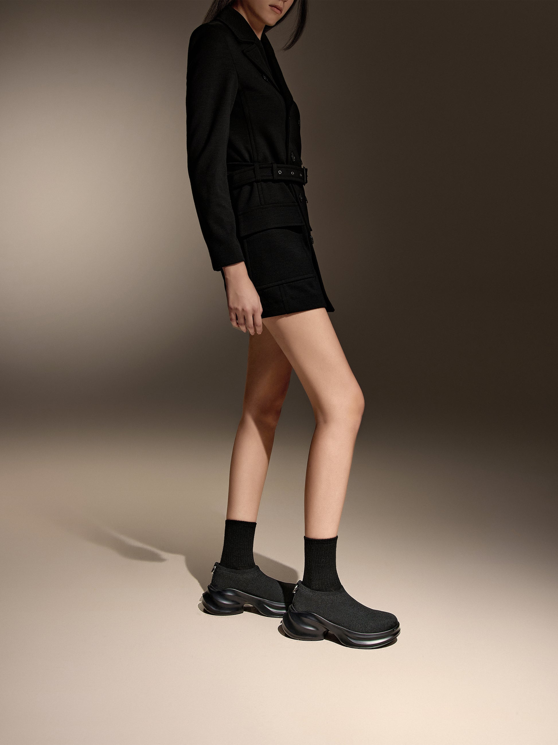 Staccato x Heliot Emil - Black Knitted Slip On Platform Sneakers EAI02